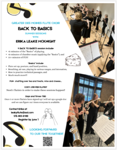 Private flute lessons in the Des Moines Metro area (Altoona, Pleasant Hill, Norwalk, West Des Moines, Clive, Urbandale, Waukee, Johnston, Ankeny, Windsor Heights, Beaverdale) including Marshalltown, Bondurant, Farrar, Dallas Center, Grimes, Adel, and De Soto.