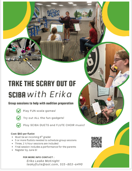 This fun and helpful workshop is all about getting 8th grade flutists ready for their SCIBA Honor Band audition. We’ll go over everything you need—scales and etudes—in simple steps, with